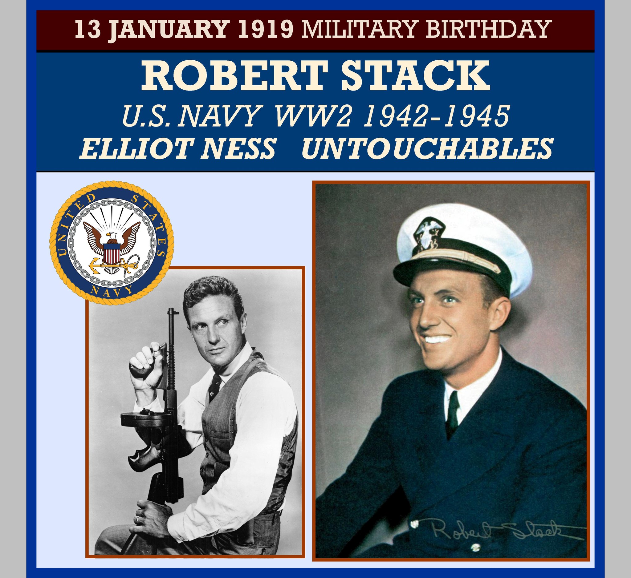 Robert Stack (born Charles Langford Modini Stack, January 13, 1919 â May 14, 2003) was an American actor, sportsman, and television host. Known for his deep voice and commanding presence, he appeared in over forty feature films. He starred in the ABC television series The Untouchables (1959â1963), for which he won the 1960 Primetime Emmy Award for Outstanding Performance by an Actor in a Series, and later hosted/narrated the true-crime series Unsolved Mysteries (1987â2002).