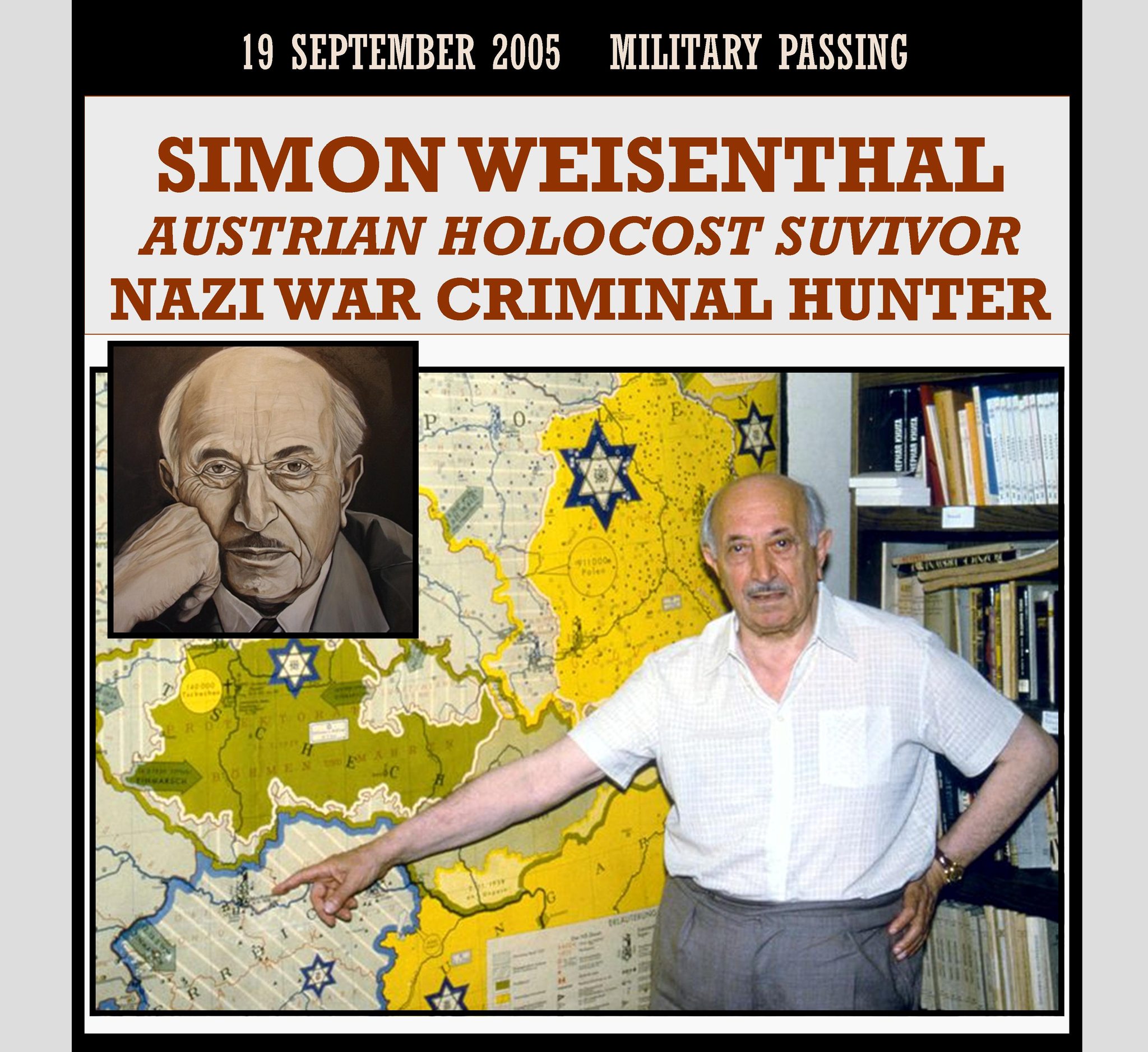 Simon Wiesenthal KBE (31 December 1908 â 20 September 2005) was a Jewish Austrian Holocaust survivor, Nazi hunter, and writer. He studied architecture and was living in Lwów at the outbreak of World War II. He survived the Janowska concentration camp (late 1941 to September 1944), the Kraków-PÅaszów concentration camp (September to October 1944), the Gross-Rosen concentration camp, a death march to Chemnitz, Buchenwald, and the Mauthausen concentration camp (February to 5 May 1945).