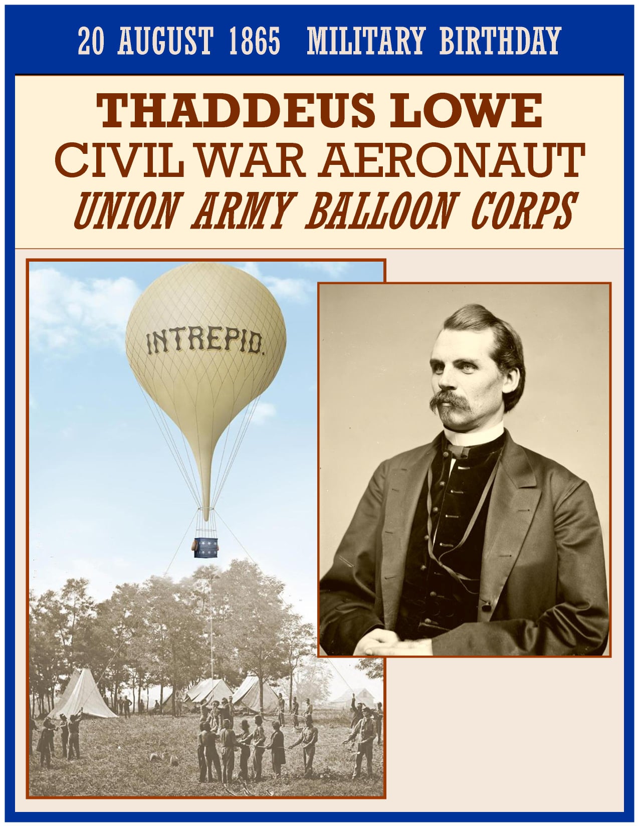 Thaddeus Sobieski Constantine Lowe (August 20, 1832 â January 16, 1913), also known as Professor T. S. C. Lowe, was an American Civil War aeronaut, scientist and inventor, mostly self-educated in the fields of chemistry, meteorology, and aeronautics, and the father of military aerial reconnaissance in the United States.[1] By the late 1850s he was well known for his advanced theories in the meteorological sciences as well as his balloon building. Among his aspirations were plans for a transatlantic flight.