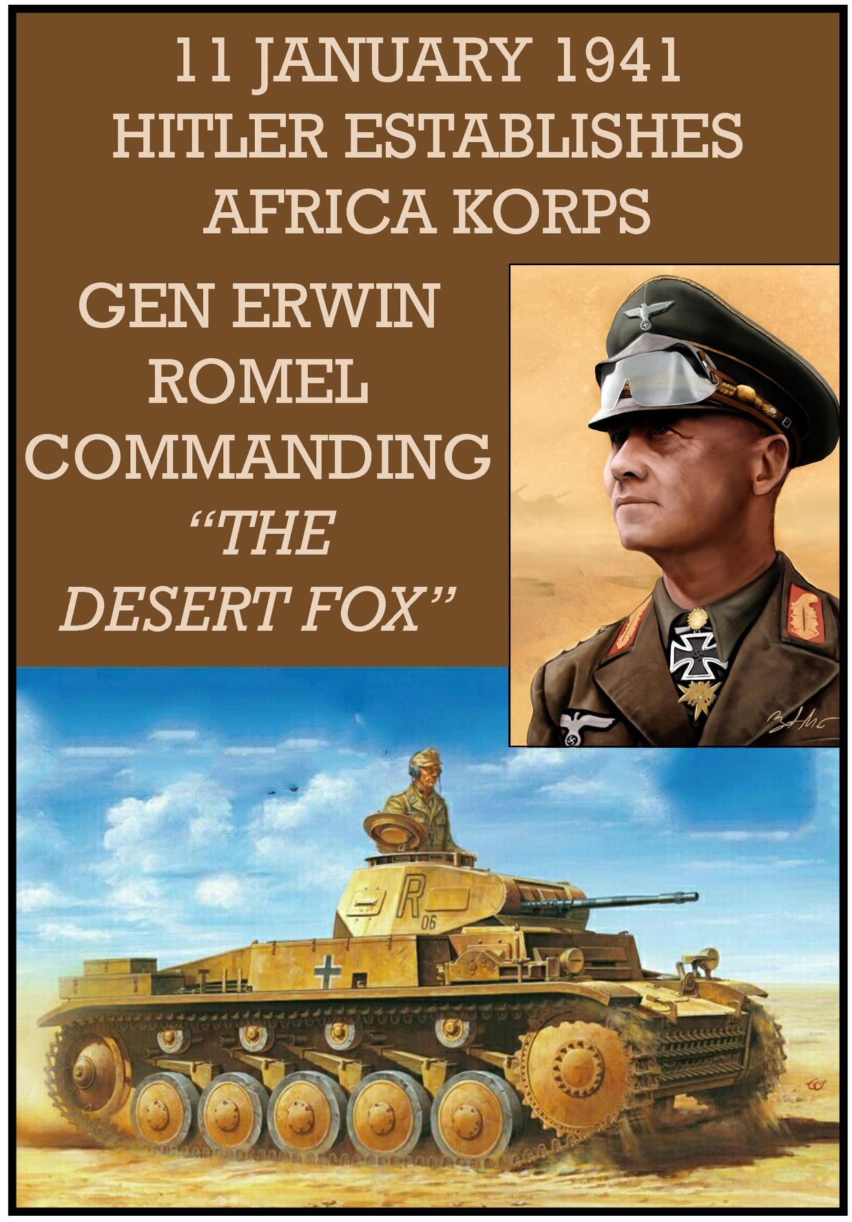 The Afrika Korps or German Africa Corps (German: Deutsches Afrikakorps, DAK was the German expeditionary force in Africa during the North African Campaign of World War II. First sent as a holding force to shore up the Italian defense of their African colonies, the formation fought on in Africa, under various appellations, from March 1941 until its surrender in May 1943. The unit’s commander was Field Marshal Erwin Rommel. rochestermilitary.com