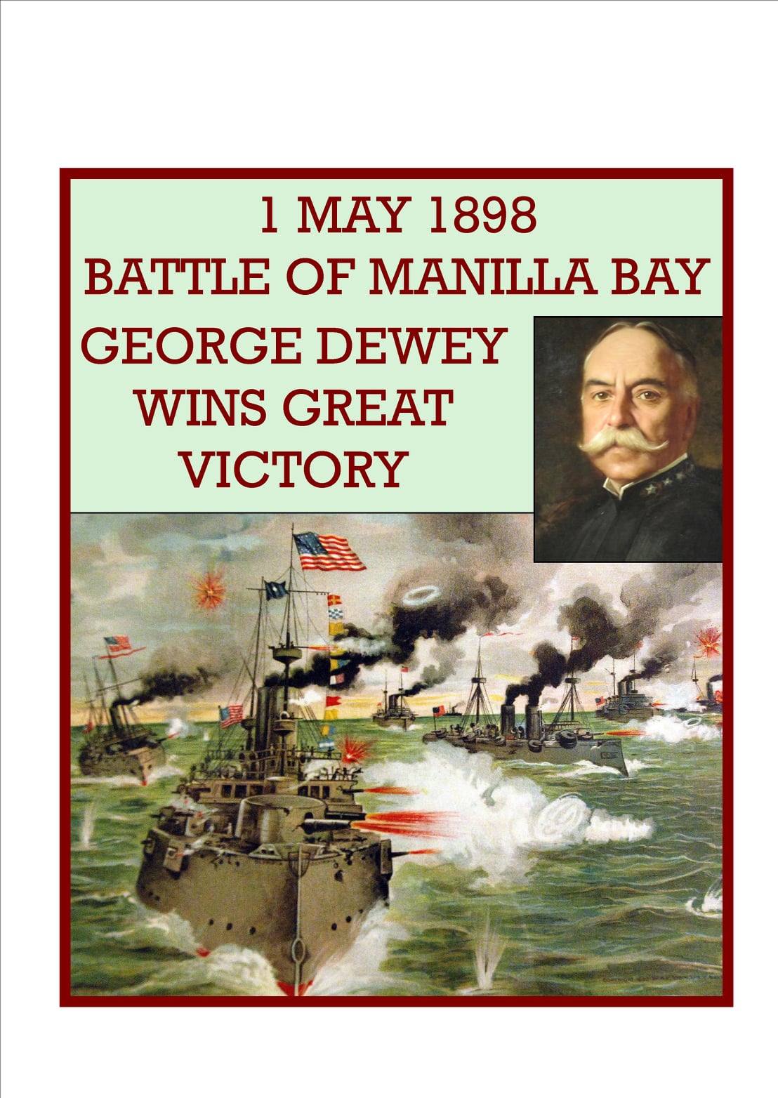 The Battle of Manila Bay, also known as the Battle of Cavite, took place on 1 May 1898, during the Spanish–American War. The American Asiatic Squadron under Commodore George Dewey engaged and destroyed the Spanish Pacific Squadron under Contraalmirante (Rear admiral) Patricio Montojo. The battle took place in Manila Bay in the Philippines, and was the first major engagement of the Spanish–American War. The battle, won by the Americans, was one of the most decisive naval battles in history and marked the end of the Spanish colonial period in Philippine history.