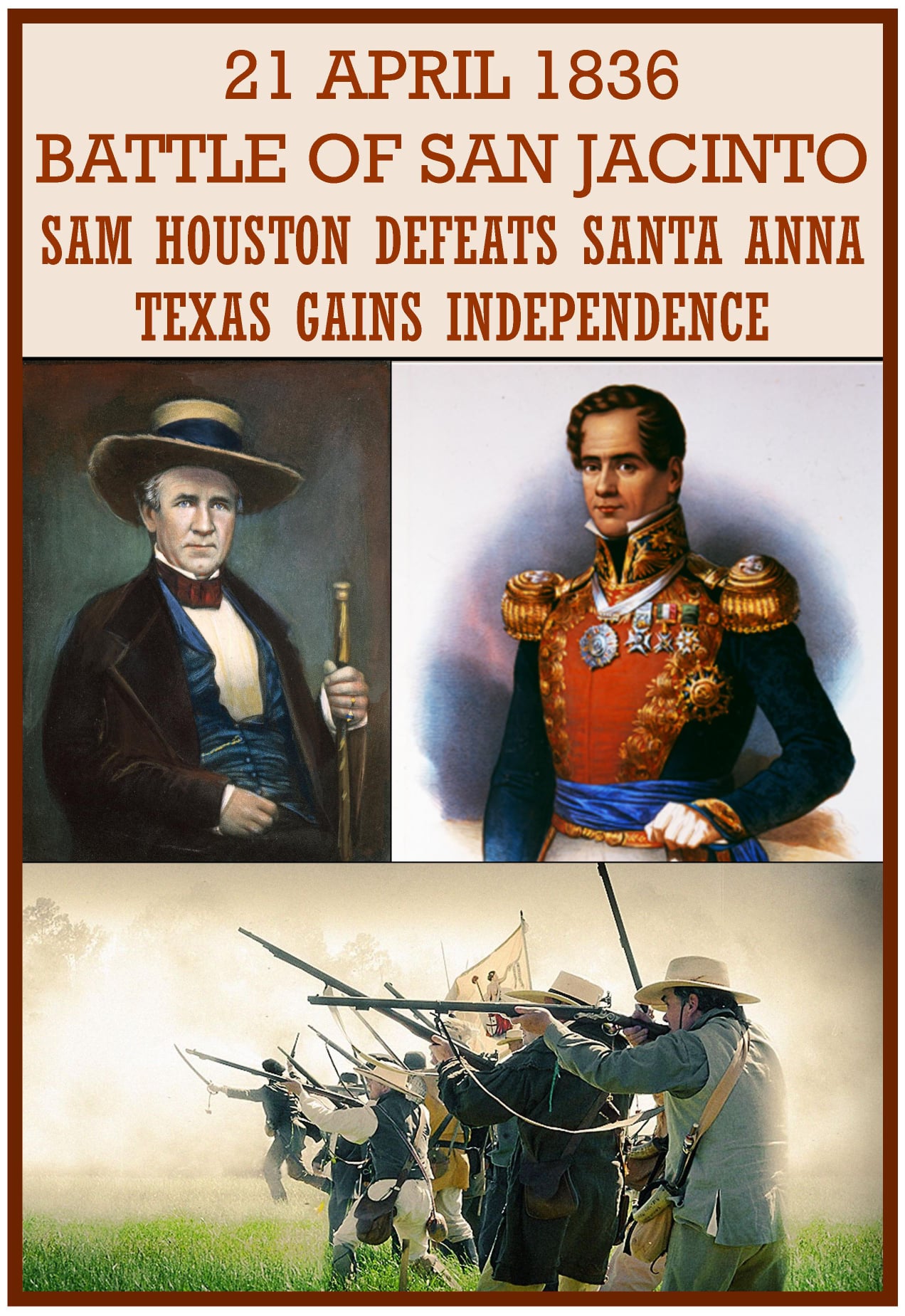 The Battle of San Jacinto, fought on April 21, 1836, in present-day Houston, Texas, was the decisive battle of the Texas Revolution. Led by General Samuel Houston, the Texan Army engaged and defeated General Antonio López de Santa Anna’s Mexican army in a fight that lasted just 18 minutes.