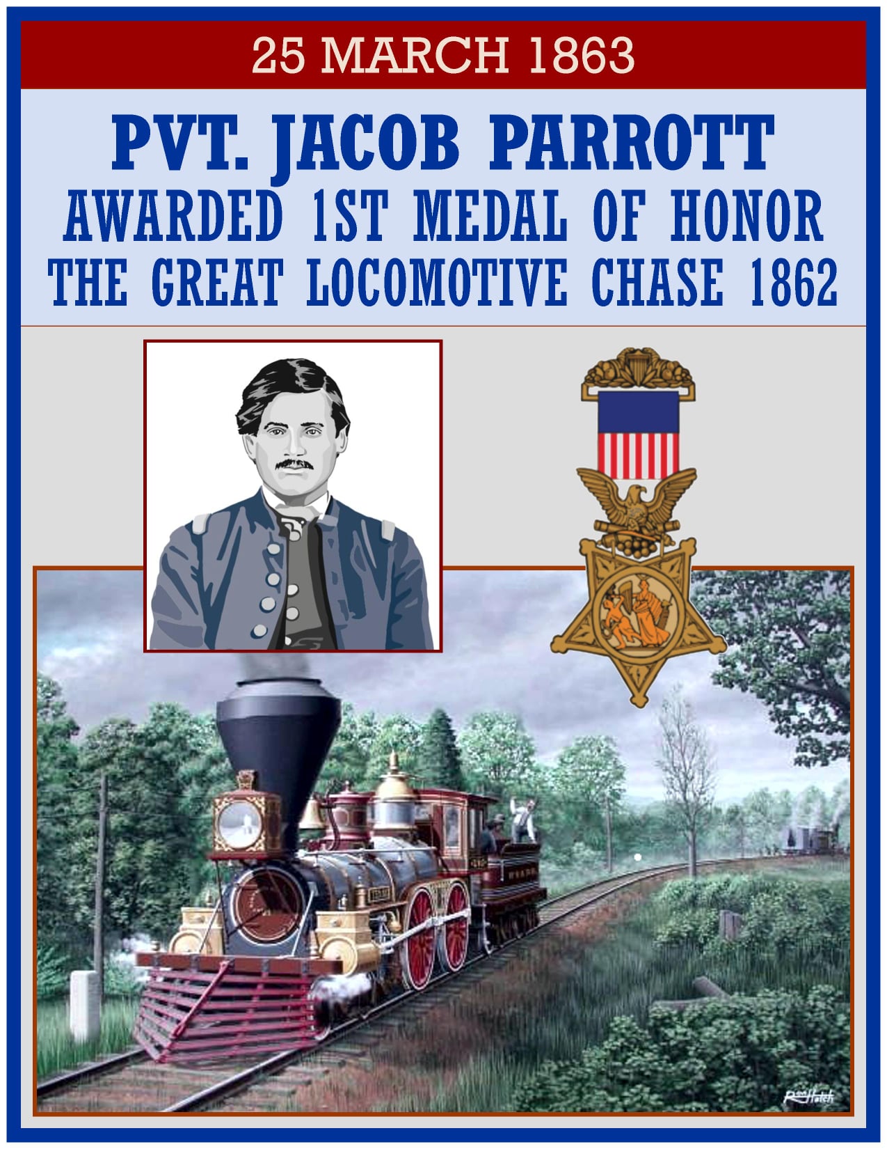 In 1863, Secretary of War Edwin M. Stanton announced that the raiders would receive the newly approved Medal of Honor. Private Jacob Parrott, who had been physically abused as a prisoner, was awarded the first. The others were Sergeant Elihu H. Mason, Corporals William Pittinger and William H. H. Reddick, and Privates William Bensinger and Robert Buffum. Stanton also offered them all commissions as First Lieutenants.