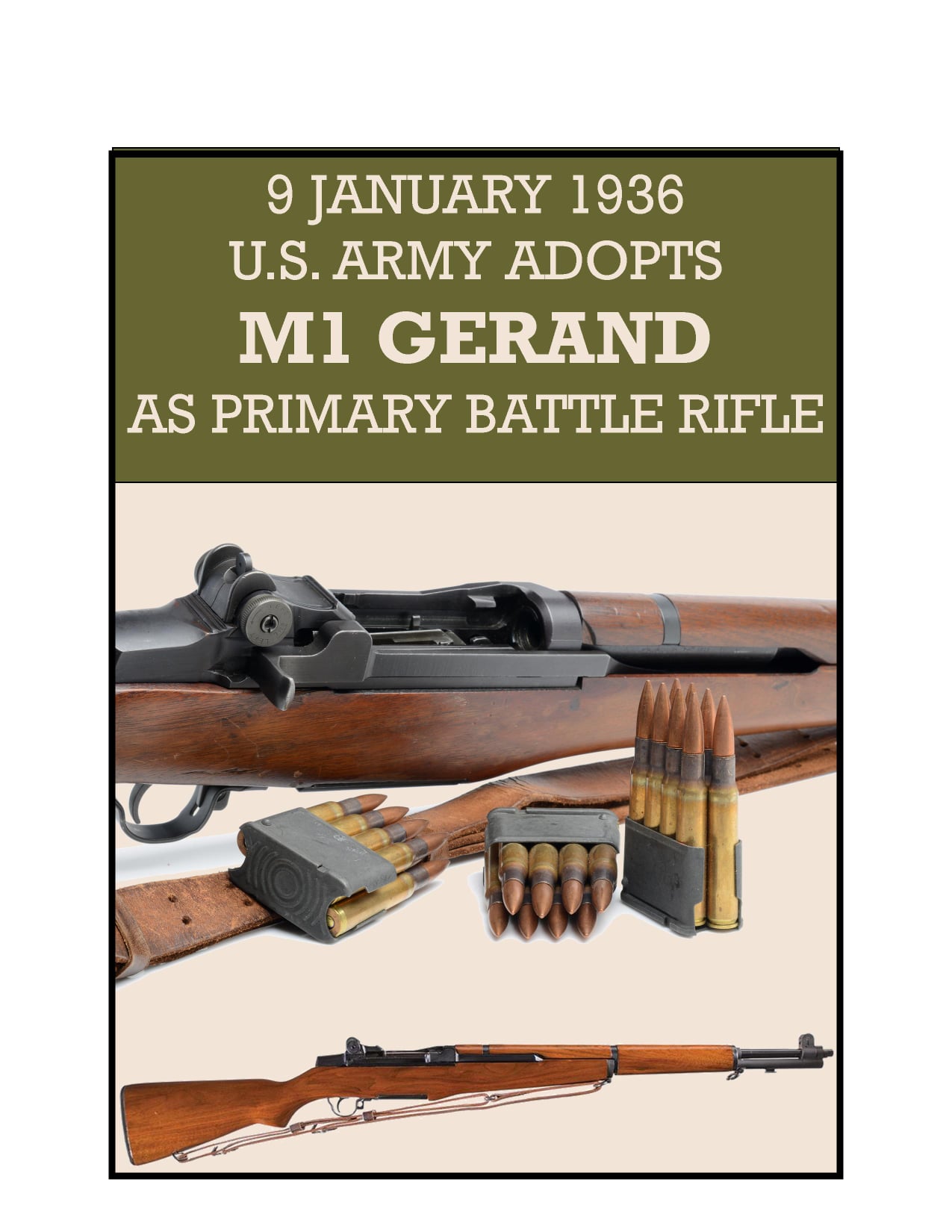 The M1 “Garand” was designed in 1924 John Garand, and adopted in 1936 in the United States Military. The M1 Garand is a .30-06 caliber semi-automatic rifle that was the standard U.S. service rifle during World War II and the Korean War and also saw limited service during the Vietnam War. Most M1 rifles were issued to U.S. forces, though many hundreds of thousands were also provided as foreign aid to American allies. It has been said that the M1 was the weapon that won WW2. rochestermilitary.com