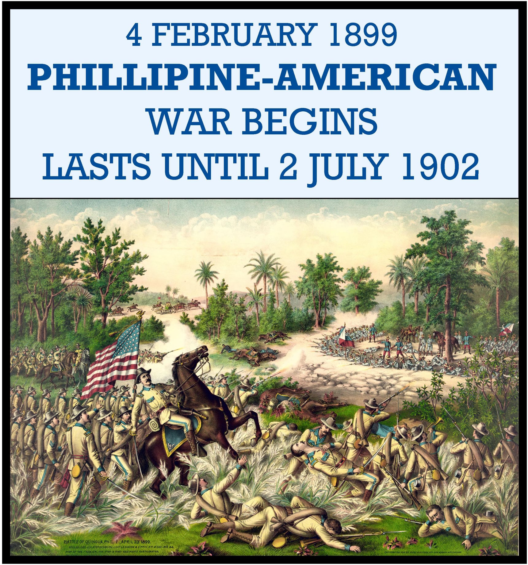 The PhilippineâAmerican War or the FilipinoâAmerican War, previously referred to as the Philippine Insurrection or the Tagalog Insurgency by the United States, was an armed conflict between the First Philippine Republic and the United States that lasted from February 4, 1899, to July 2, 1902. While Filipino nationalists viewed the conflict as a continuation of the struggle for independence that began in 1896 with the Philippine Revolution against Spain, the U.S. government regarded it as an insurrection. The conflict arose when the First Philippine Republic objected to the terms of the Treaty of Paris under which the United States took possession of the Philippines from Spain, ending the SpanishâAmerican War.