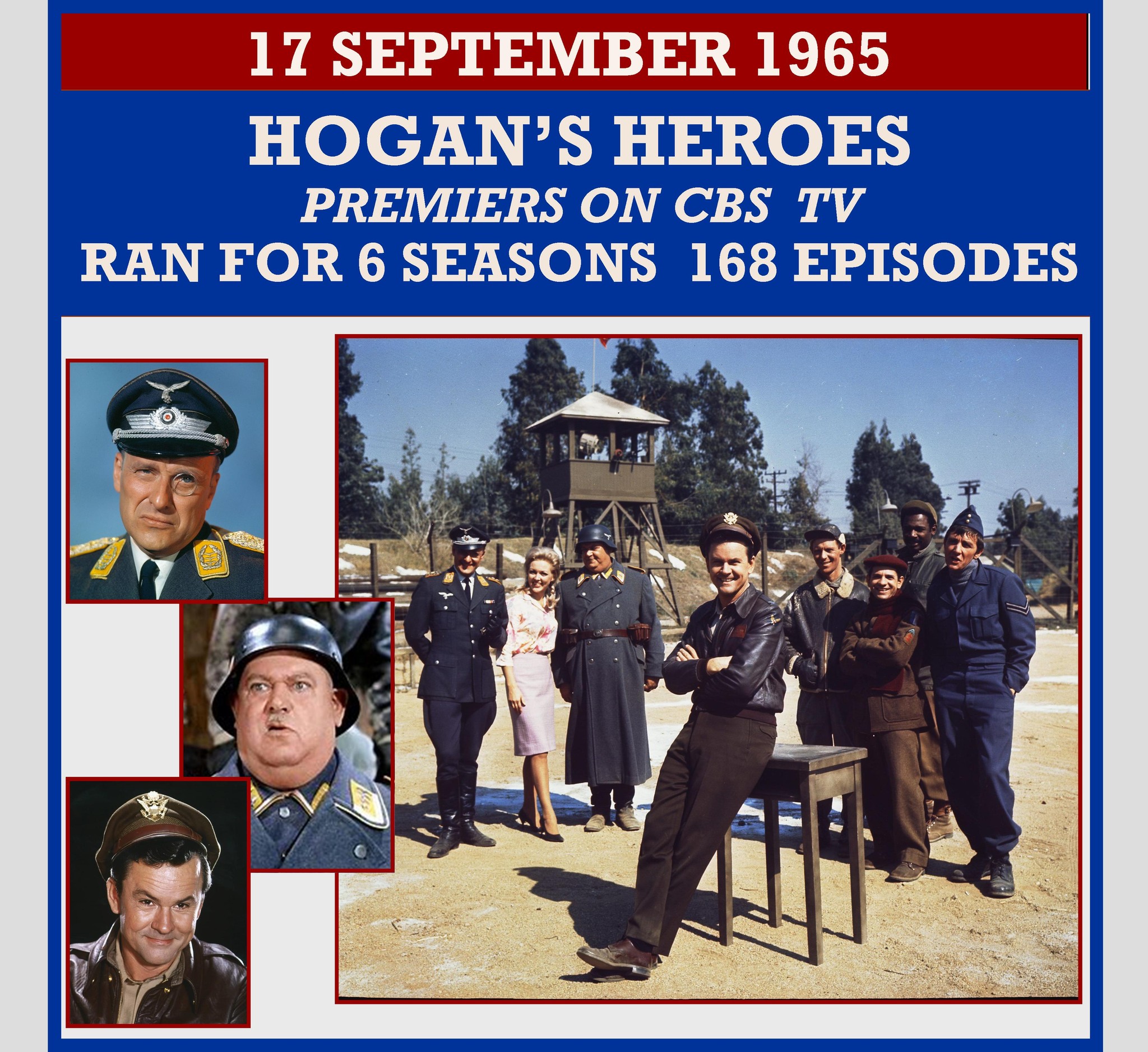 The TV comedy Hogan’s Heroes about a German prisoner of war camp premieres on CBS, starring Bob Crane as Col. Hogan. The show used Jewish actors to portray the Germans, several of whom had fled Nazi Germany. Some even spent time in concentration camps.