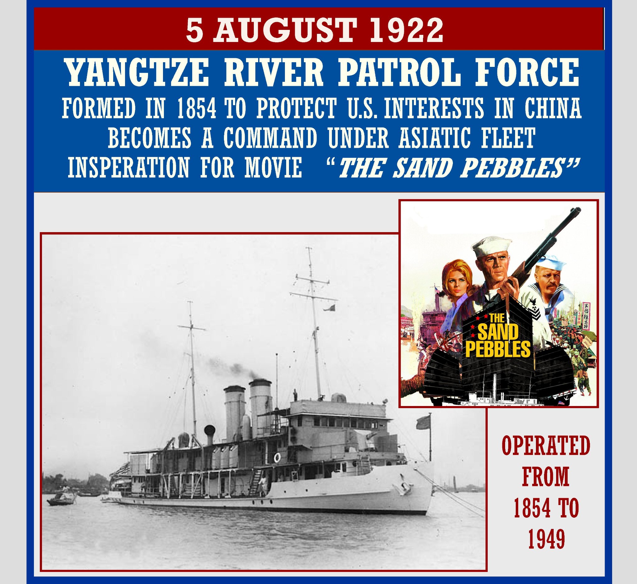 In 1922, Yangtze Patrol was established as a formal component of the United States Navy in China.