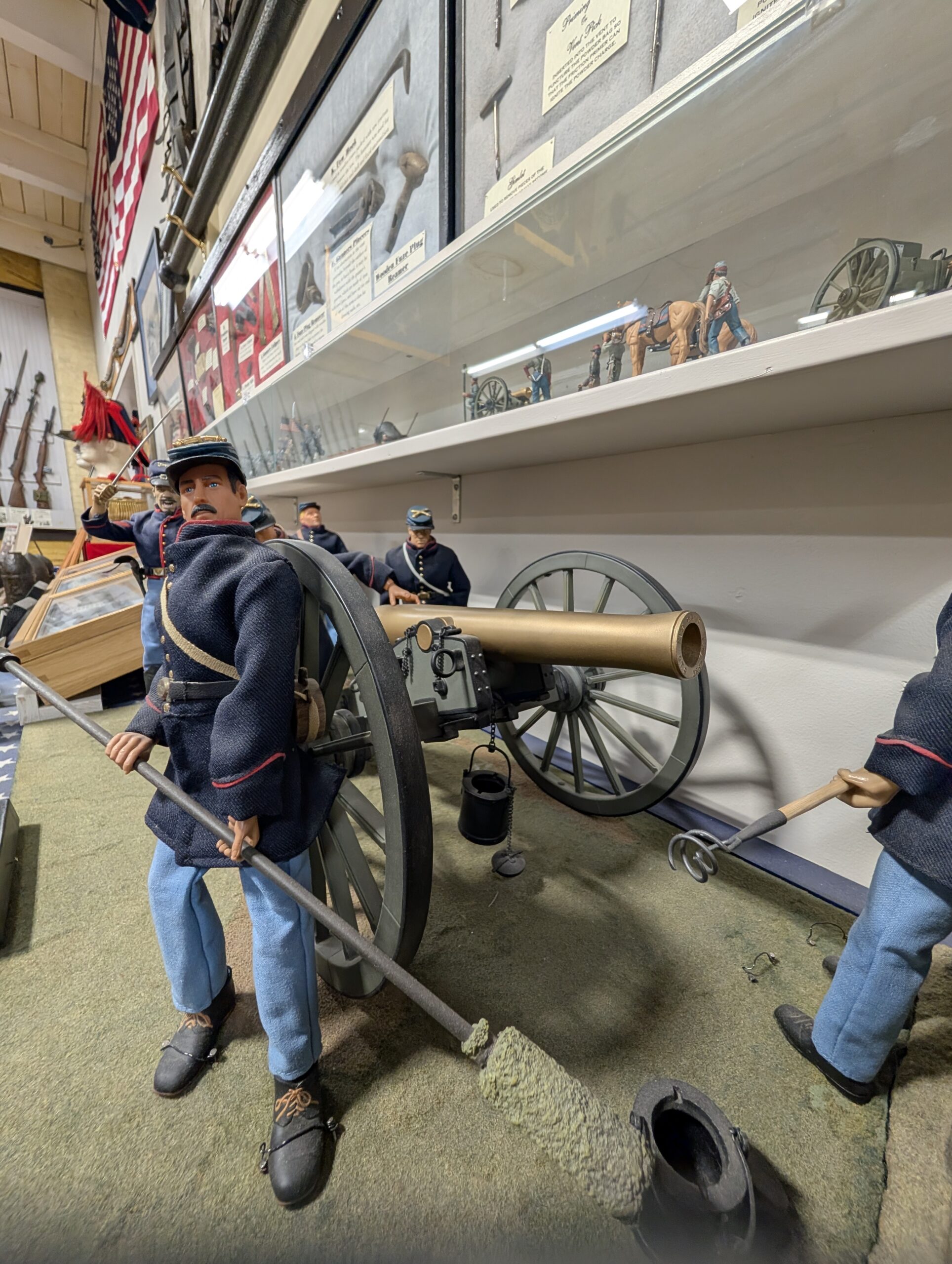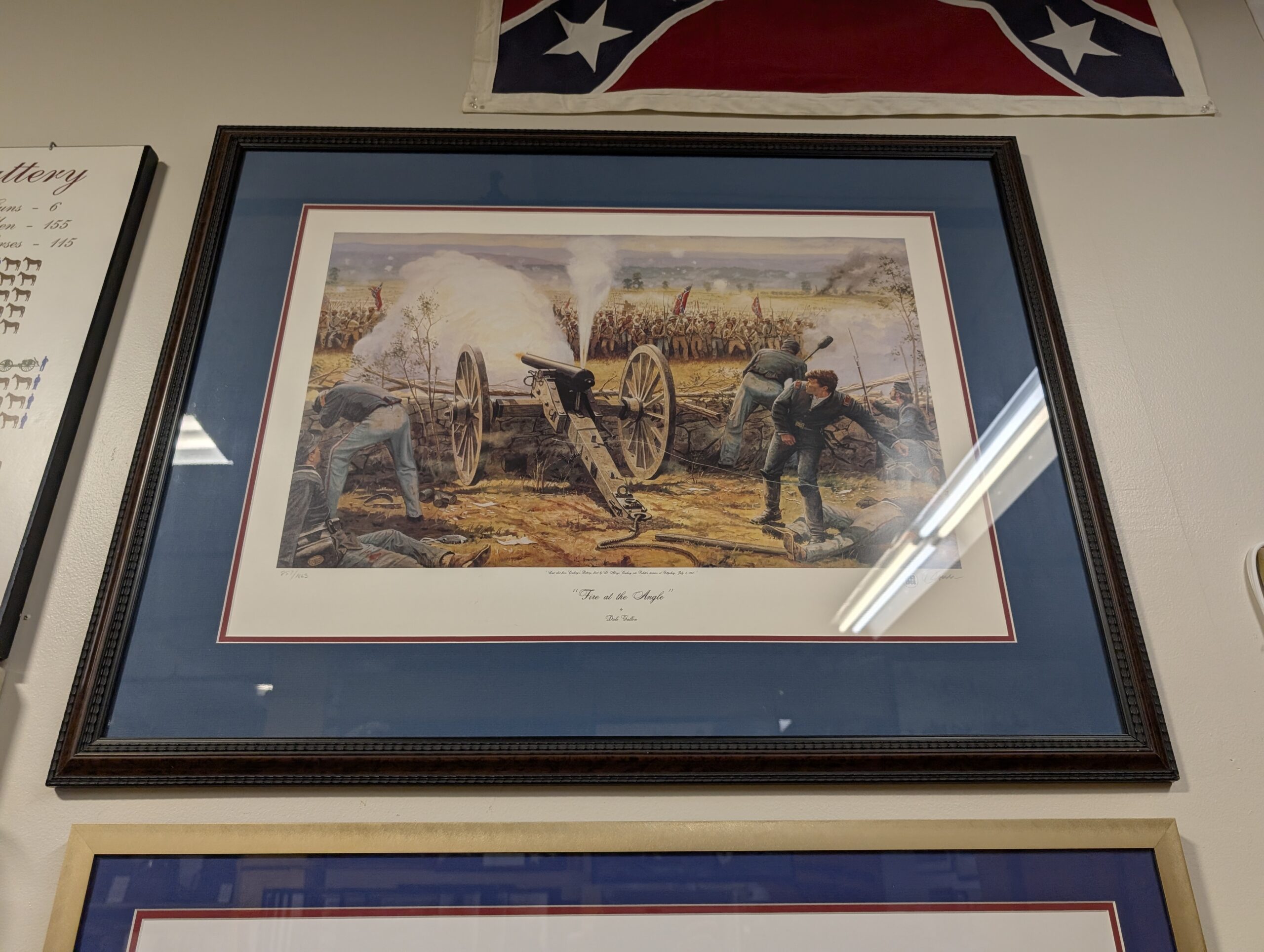 On the battlefield, artillery crews faced not only enemy fire but also desperate infantry charges. At the Battle of Gettysburg on July 3, 1863, Union cannoneers defending the stone wall at ‘the Angle’ were instrumental in repelling the Confederate assault known as Pickett’s Charge. As depicted in the artwork ‘Fire at the Angle,’ they fought their guns to the last, firing double loads of canister into the faces of the advancing infantry, a stark testament to the brutal, close-quarters reality of artillery combat.