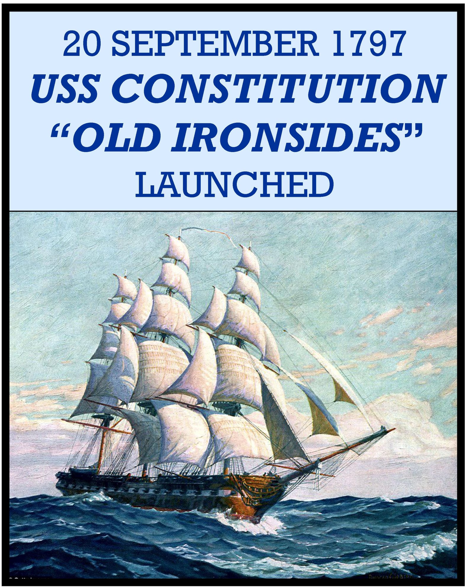 USS Constitution, also known as Old Ironsides, is a wooden-hulled, three-masted heavy frigate of the United States Navy. She is the world’s oldest ship of any type still afloat. She was launched on 20 September 1797, one of six original frigates authorized for construction by the Naval Act of 1794 and the third constructed.