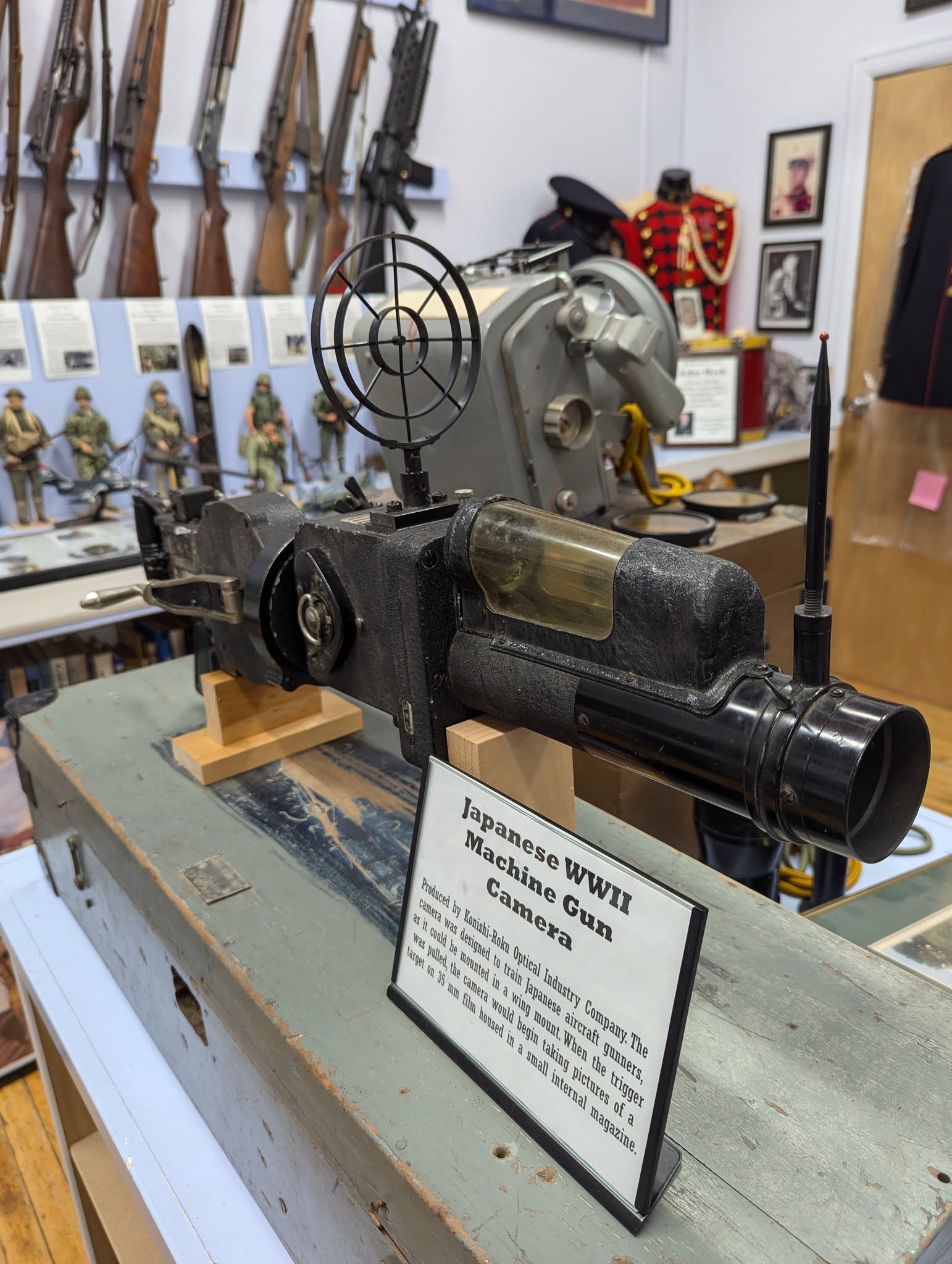 3) We recently acquired a Japanese machine-gun camera manufactured by Konishi-Roku Optical Industry Company. The camera, shaped like a machine gun, enabled rapid fire aerial photography!
