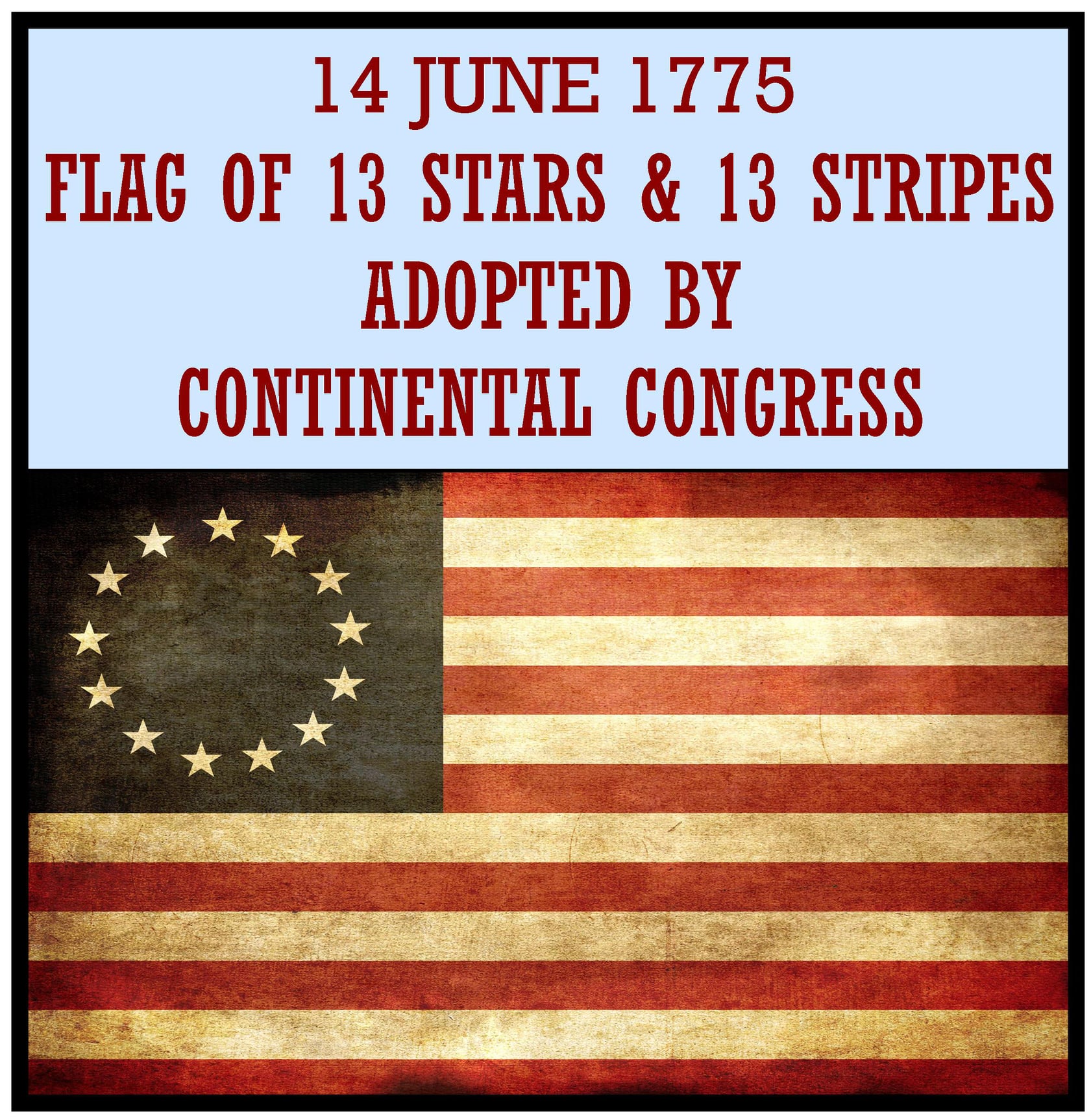 On June 14, 1777, the Second Continental Congress took a break from writing the Articles of Confederation and passed a resolution stating that âthe flag of the United States be 13 stripes, alternate red and white,â and that âthe union be 13 stars, white in a blue field, representing a new constellation.â
